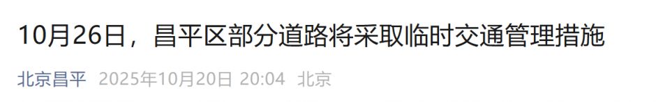 10月26日8时00分至赛事和活动结束,对相关道路分时分段采取临时交通管理措施,除持有2025年第三届“骑行北京·百里环廊”公路自行车赛和smart杯TREK100骑行活动专用证件的车辆和人员外,禁止其他车辆和行人通行。