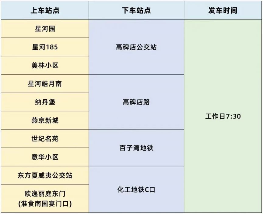 01 进京线路。发车时间为工作日7:30。设置上车站点10个,下车站点4个。站点如下: