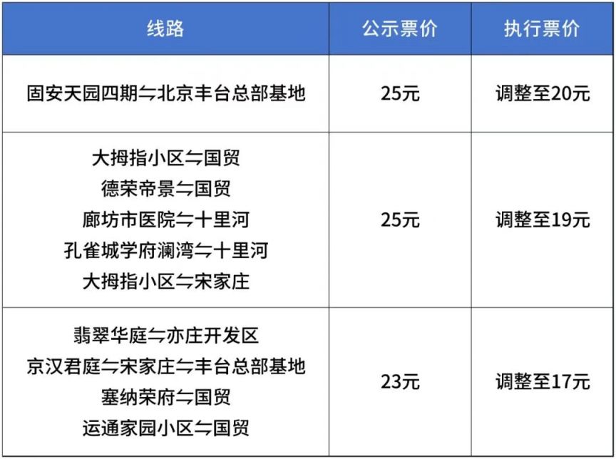 为了更好地满足大家的出行需求,提供更优质、更可靠、可持续的定制通勤服务,依据《交通运输部 国家发展改革委关于深化道路运输价格改革的意见》(交运规〔2019〕17号)中相关规定,结合当前运营成本及市场情况,定于2025年11月10日首班车起,对廊坊市主城区、固安天园四期至北京的通勤定制线路的票价进行调整。具体如下: