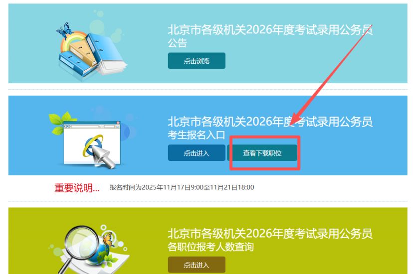 岗位表查询及下载入口:https://rsj.beijing.gov.cn/bm/ztzl/gwy/