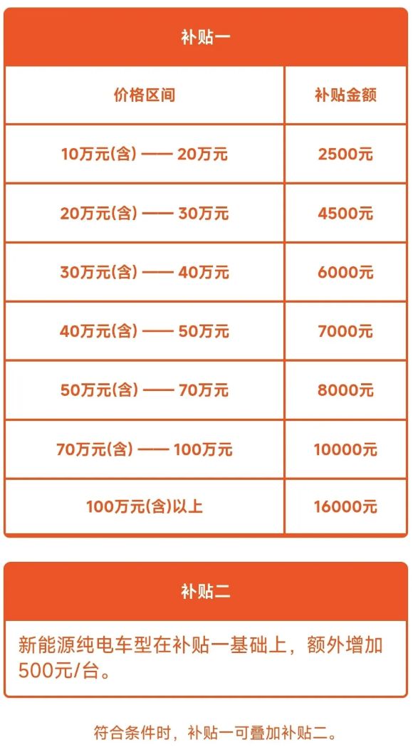 购车金额满足下述金额门槛时,可享对应补贴减免