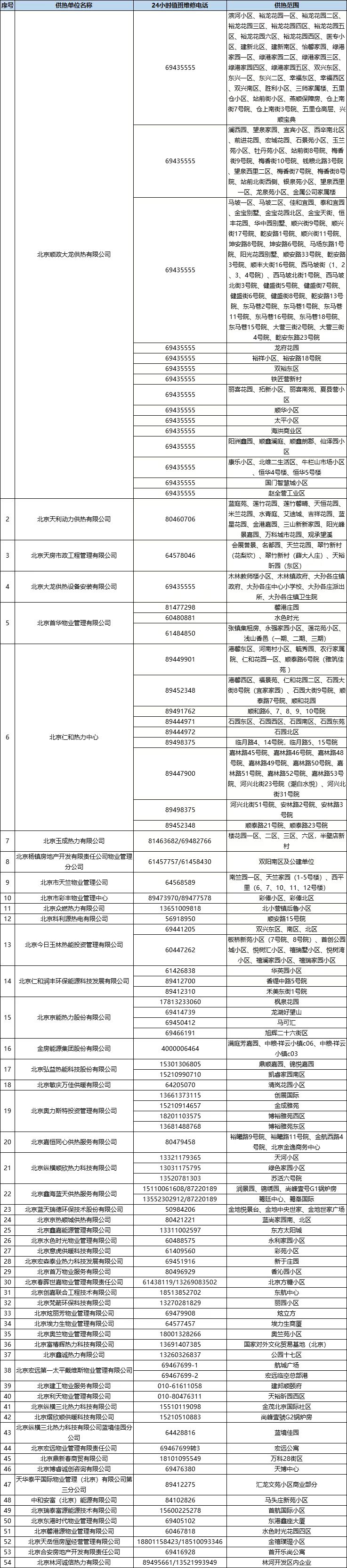 顺义区供暖服务电话