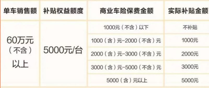 示例:活动期间李女士在朝阳区某4S店购买了一台车,单车销售额为66万,根据商业车险实缴保费金额,实际获取的补贴金额对应如下。