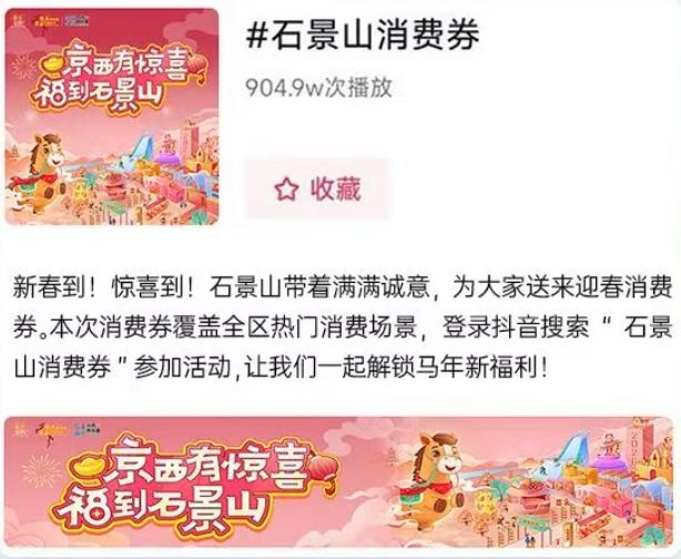 抖音搜索#石景山消费券