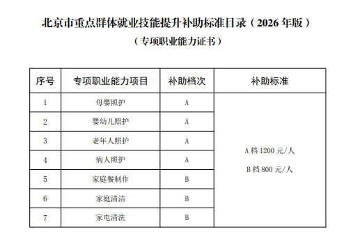 1. 北京市重点群体就业技能提升补助标准目录(2026年版)