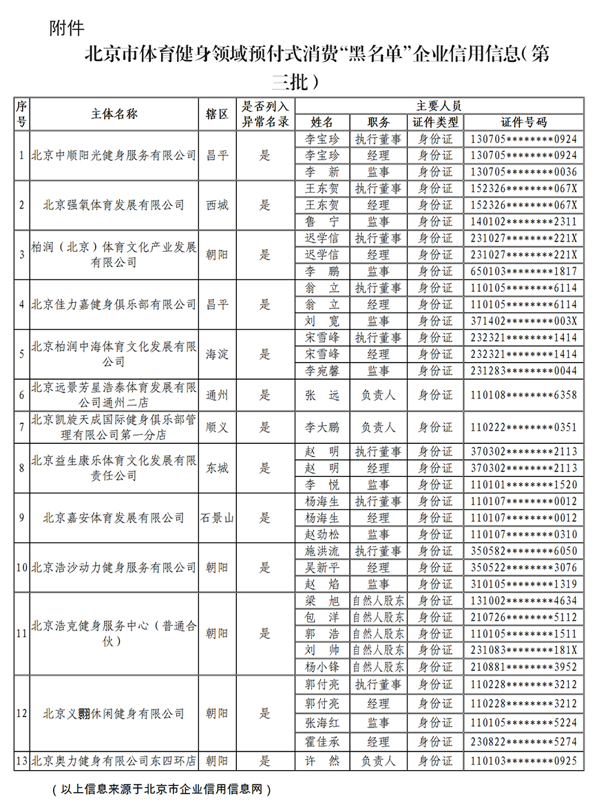 附件:北京市体育健身领域预付式消费“黑名单”企业信用信息(第三批)