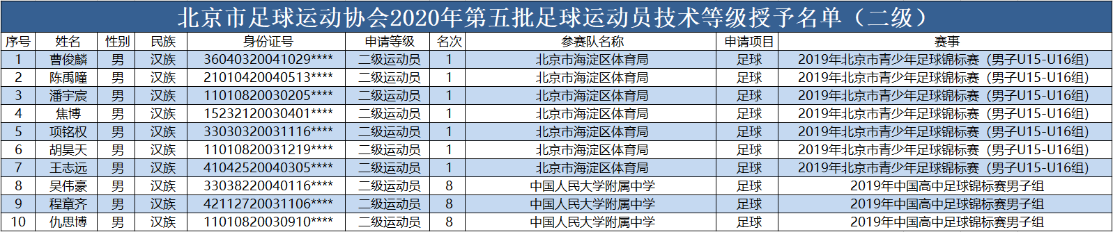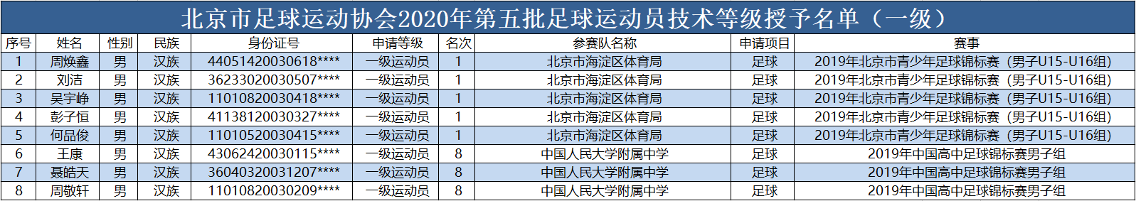 附件:1.2020年第五批足球运动员技术等级授予名单(一级)