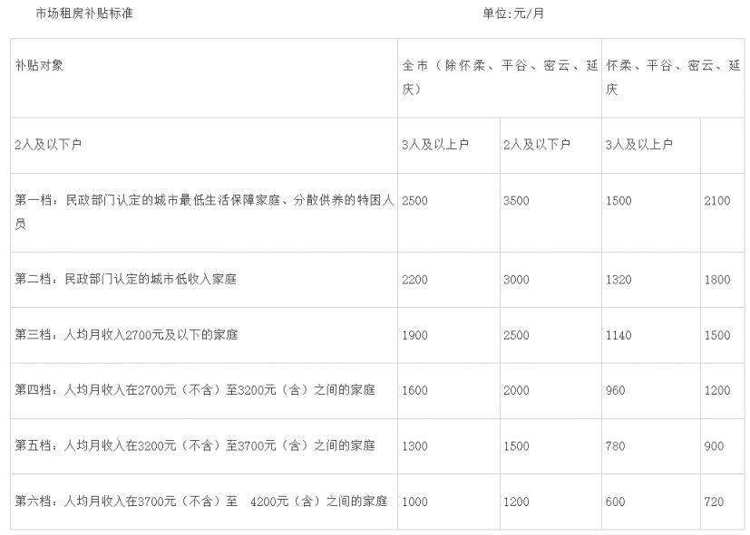 《关于调整本市市场租房补贴申请条件及补贴标准的通知》(京建法〔2020〕6号):